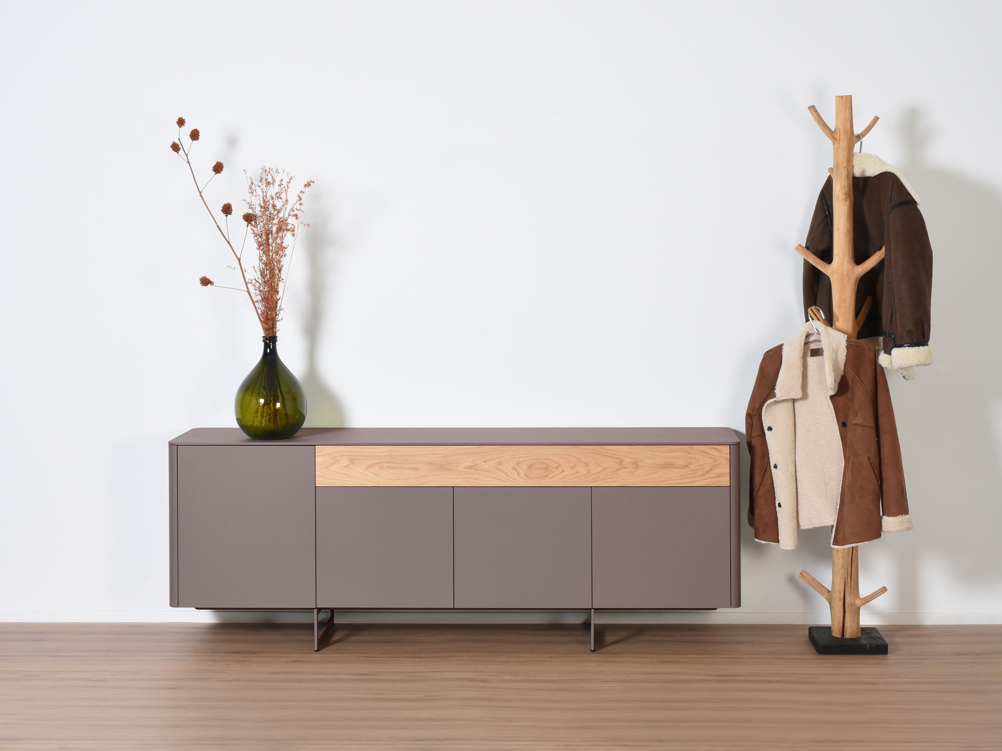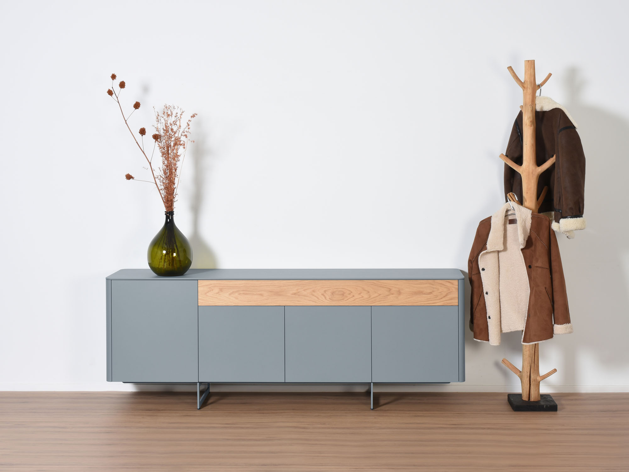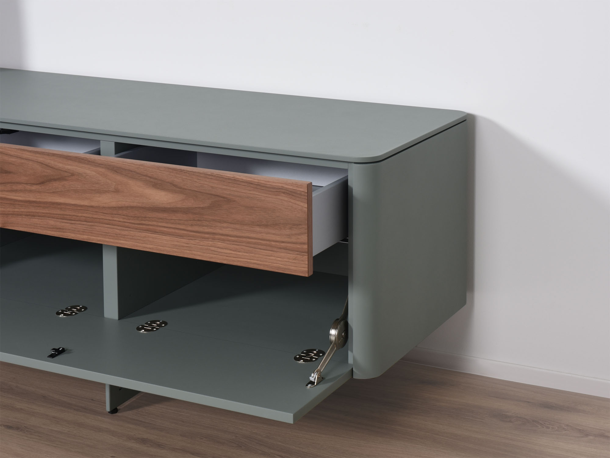 U kunt uw individuele lowboard samenstellen door de open rompen in te vullen met een passende mix van fronten als kleppen, laden en nissen. Bovendien kunt u door het toevoegen van diverse ventilatie- en bekabelingsgaten, draaibare TV-paal en speakerdoek van dat lowboard uw ideale apparatuurkast maken.