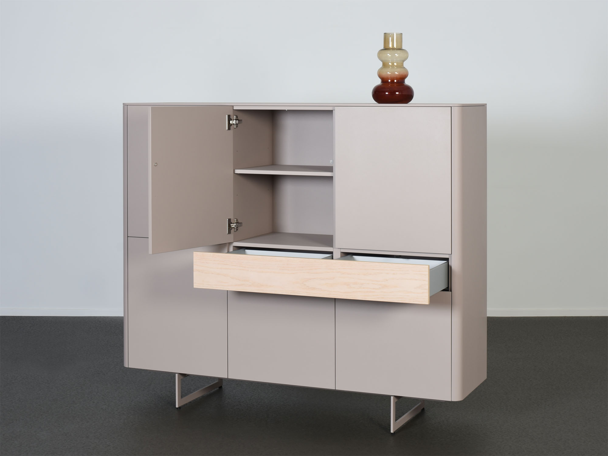 Ook de dressoirs en halfhoge kasten zijn met een mix van deuren, laden en nissen zelf samen te stellen, waardoor een Rondo kast altijd precies kan aansluiten bij uw wensen.