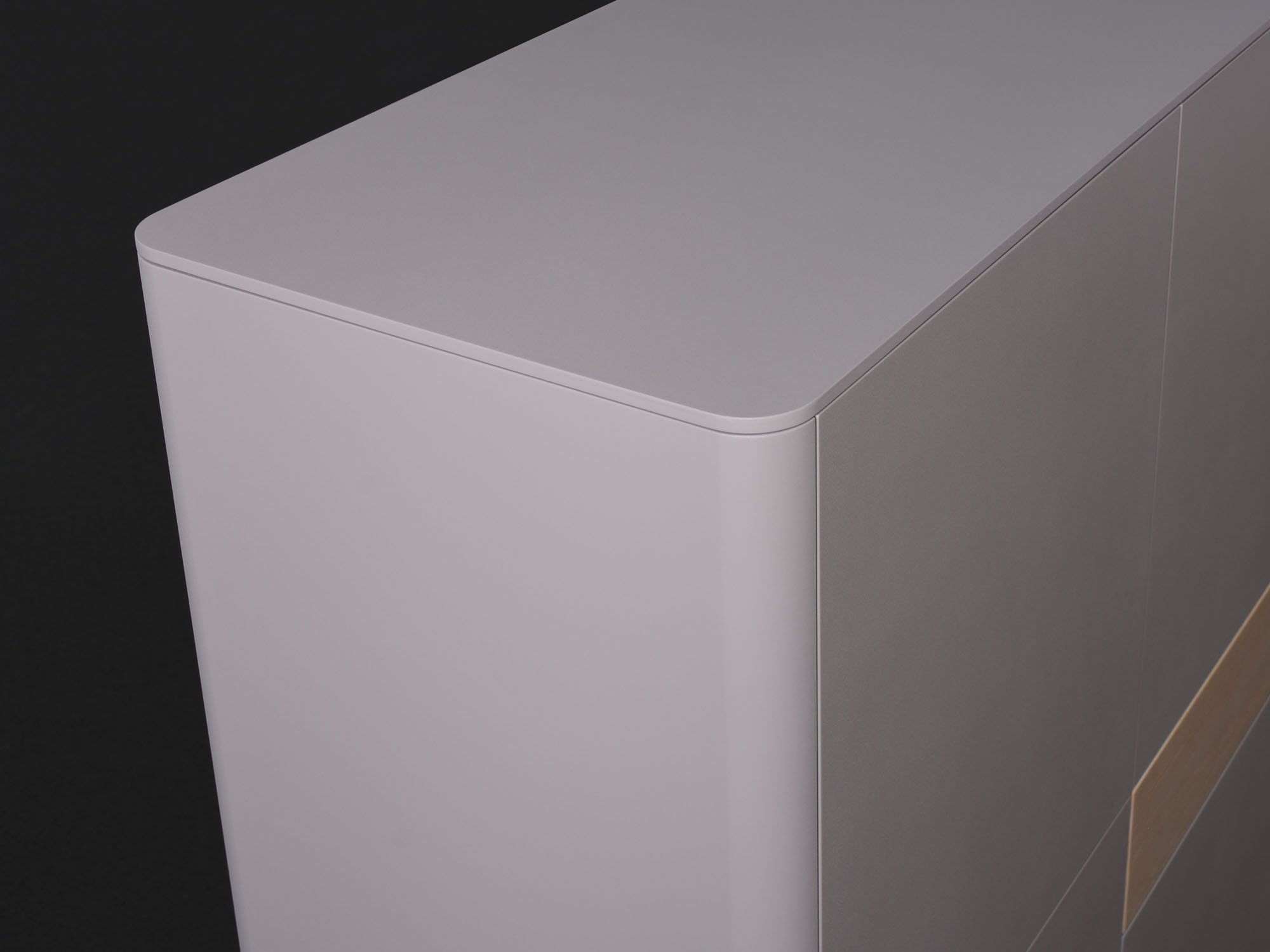 De kastenserie Rondo kenmerkt zich door afgeronde hoeken en een dun topblad. Rondo heeft lowboards, dressoirs en halfhoge kasten in verschillende lengtes. De kasten hangen aan de wand, staan op een onderstel óf hebben een onderstel met onderblad met de afgeronde hoeken.